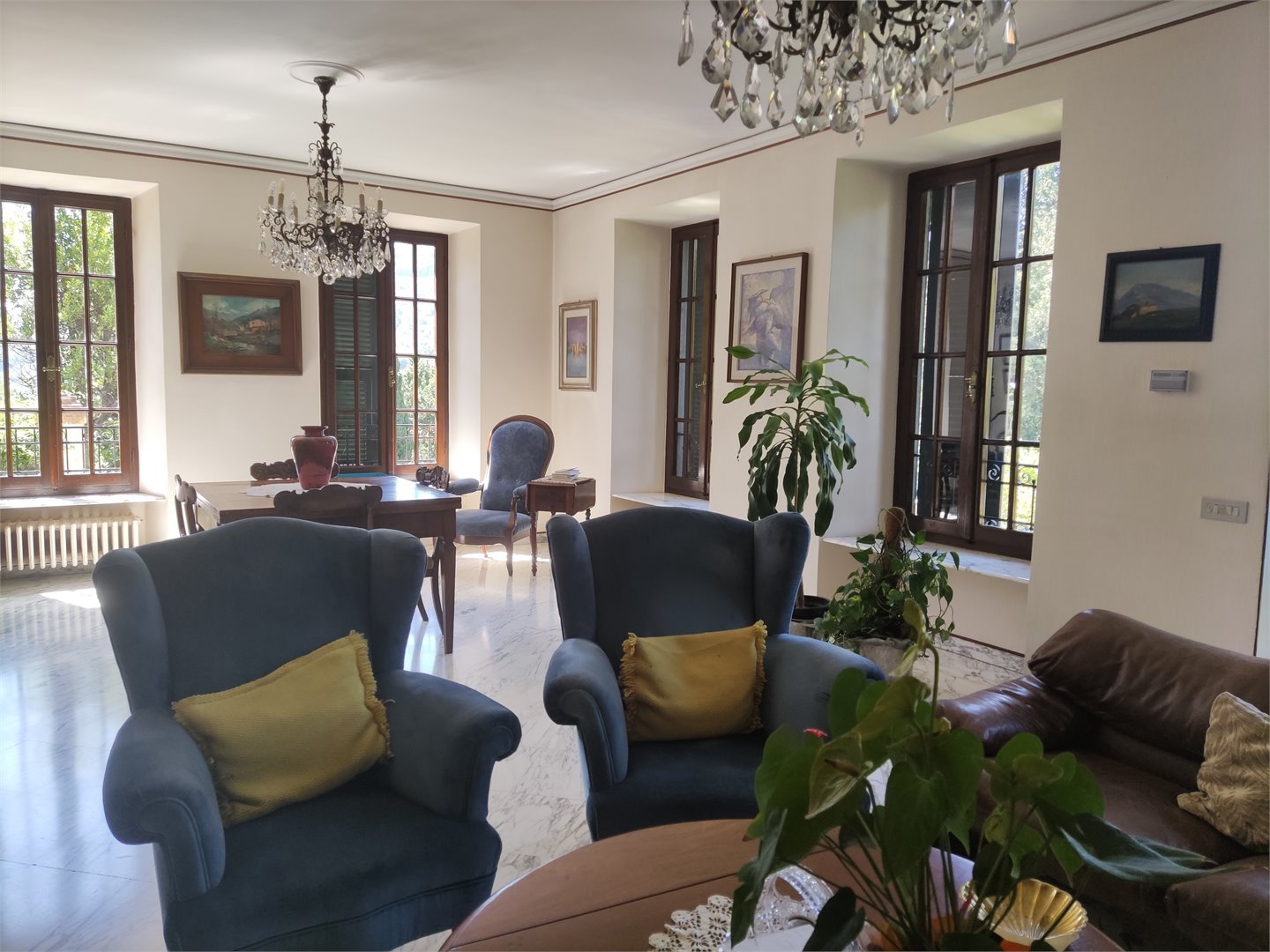 The property includes, in addition to the villa with 10 rooms, a cellar room, a technical room of about 23 square meters, a large garden and a land partly arable and partly wooded.