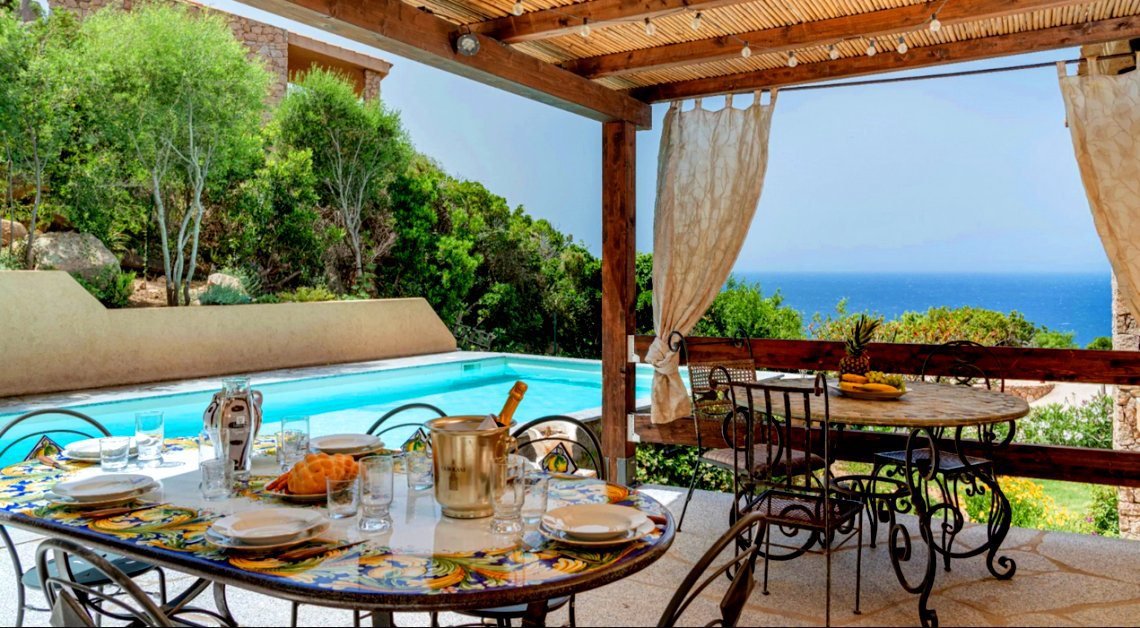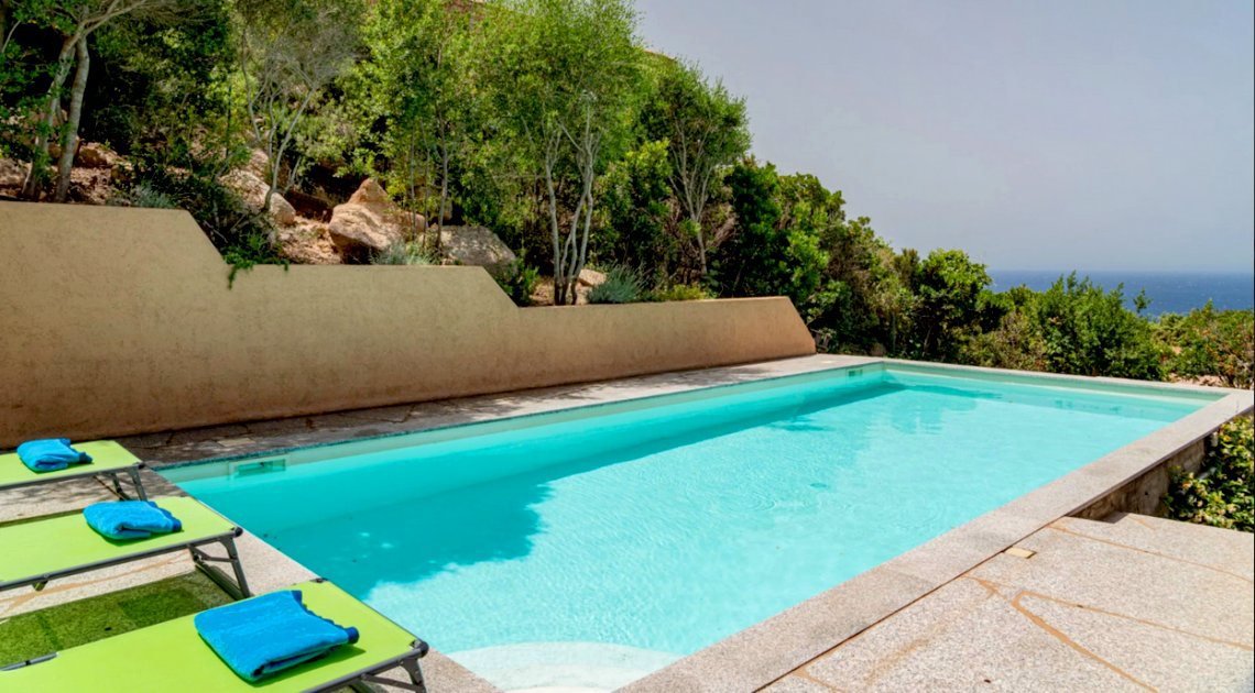 Detached villa of approximately 200 square meters, nestled in the natural oasis of Costa Paradiso, with a large sea-view terrace, private garden, and pool.