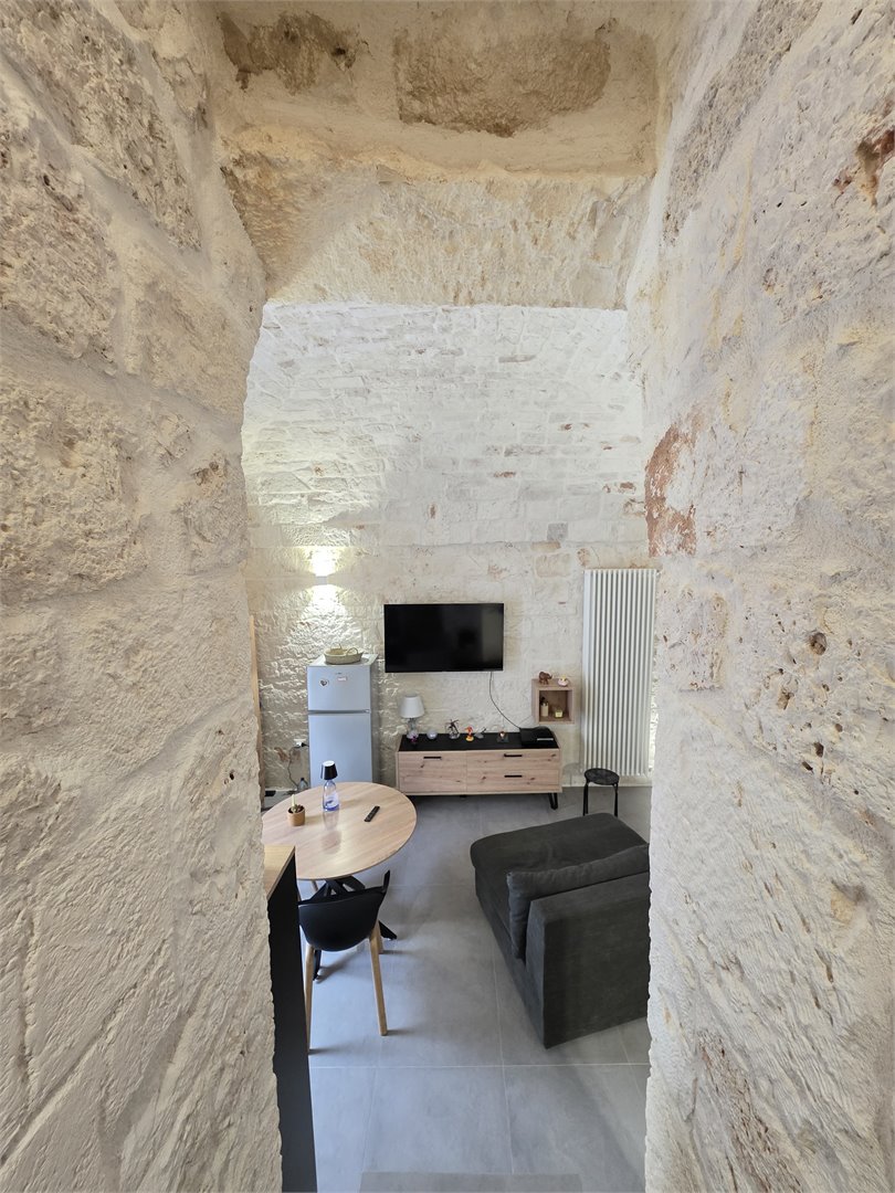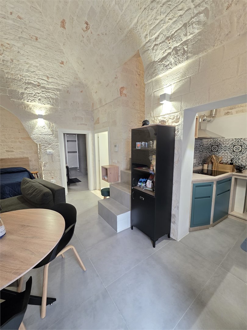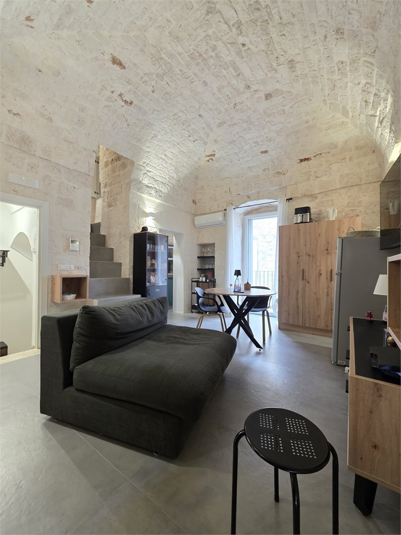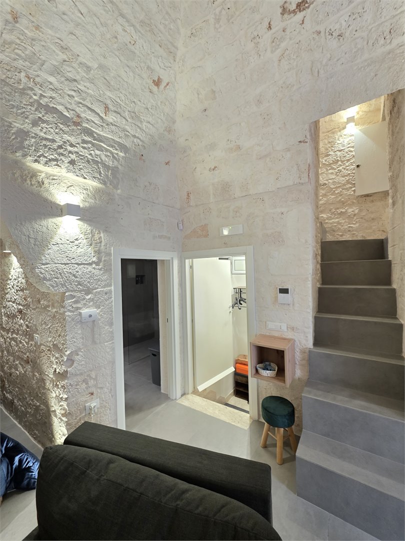 Bellissima casa in pietra, risalente ai primi dell'Ottocento, abitazione completamente ristrutturata, dove il fascino antico incontra il comfort moderno. Al primo piano ti accoglie una calda sala con balcone, impreziosita da un' alcova in pietra a vista, perfetta come zona notte. Il bagno, elegante e contemporaneo, offre una doccia con luci cromoterapiche per un'esperienza di totale relax. Il cucinino, realizzato con cura artigianale, vanta un piano in marmo, piano a induzione e mobili in legno su misura, creando un ambiente unico e funzionale. Salendo al livello superiore, un comodo ripostiglio anticipa una stanza aggiuntiva - un tempo magazzino - che conduce al lastrico solare di 30 mq da cui si gode una piacevole parzìziale vista mare. Dotata di aria condizionata e riscaldamento autonomo a metano, la casa mantiene in ogni ambiente le sue splendide volte in pietra a faccia vista, che raccontano storie di un tempo passato pur regalando un'eleganza senza tempo. Un rifugio autentico, luminoso e ricco di charme: la perfetta fusione tra storia e comfort moderno.