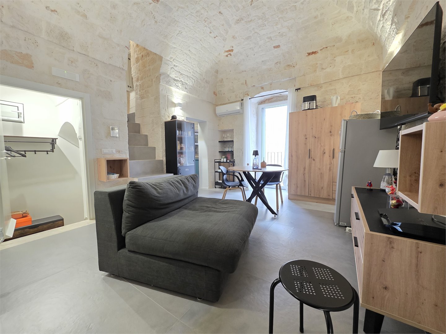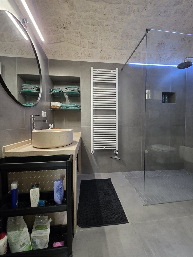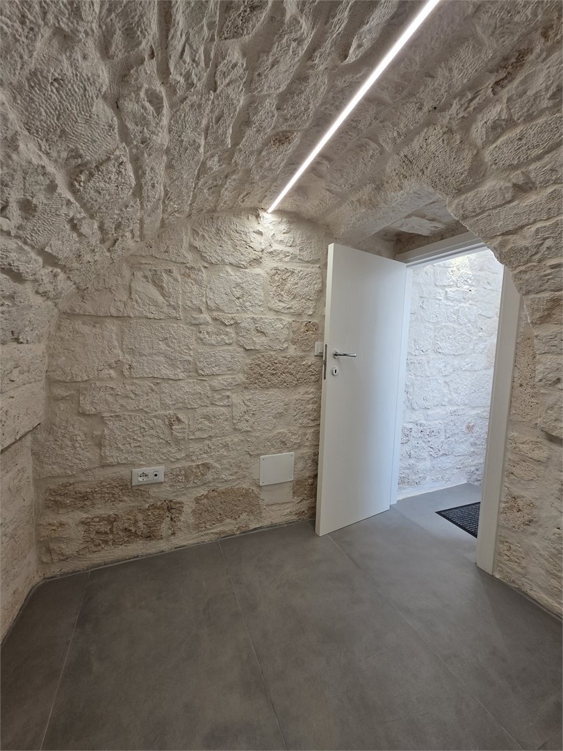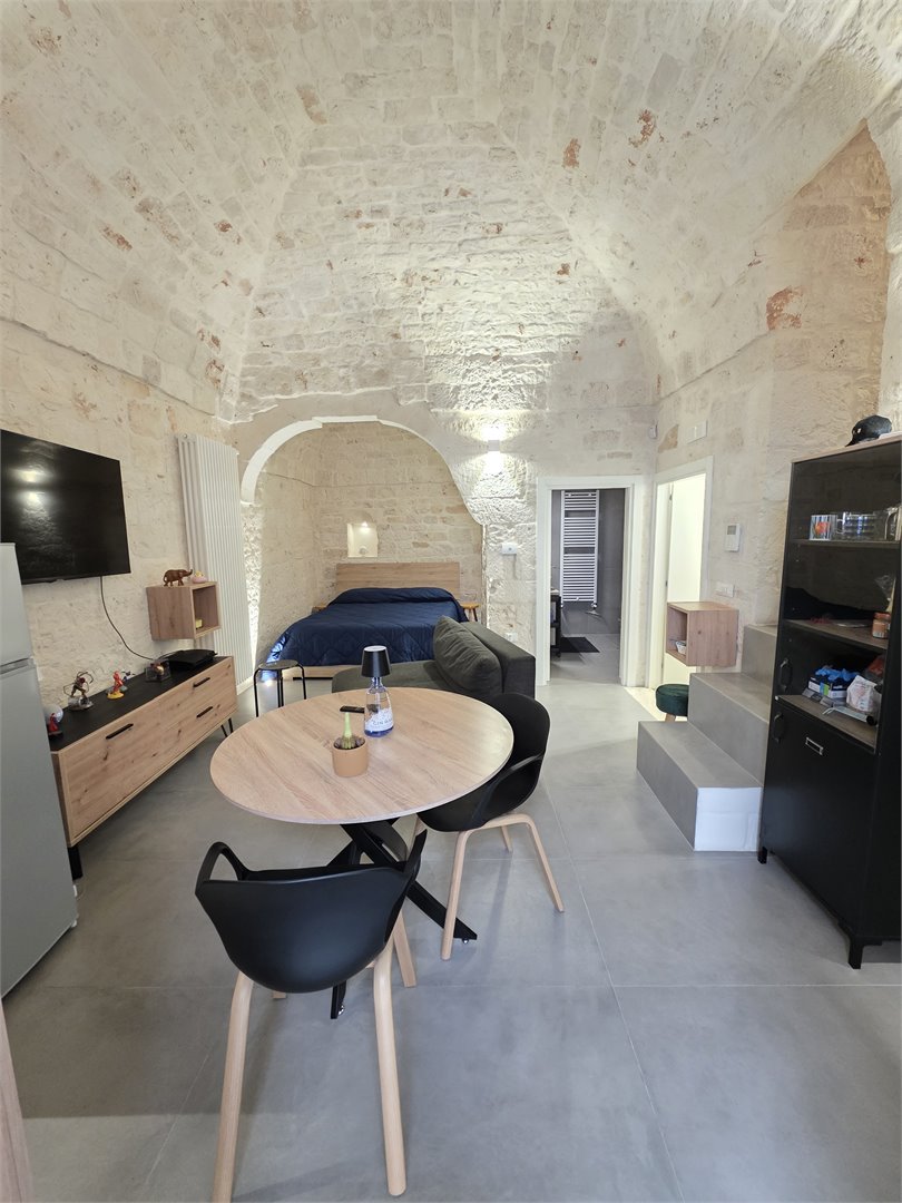 Bellissima casa in pietra, risalente ai primi dell'Ottocento, abitazione completamente ristrutturata, dove il fascino antico incontra il comfort moderno. Al primo piano ti accoglie una calda sala con balcone, impreziosita da un' alcova in pietra a vista, perfetta come zona notte. Il bagno, elegante e contemporaneo, offre una doccia con luci cromoterapiche per un'esperienza di totale relax. Il cucinino, realizzato con cura artigianale, vanta un piano in marmo, piano a induzione e mobili in legno su misura, creando un ambiente unico e funzionale. Salendo al livello superiore, un comodo ripostiglio anticipa una stanza aggiuntiva - un tempo magazzino - che conduce al lastrico solare di 30 mq da cui si gode una piacevole parzìziale vista mare. Dotata di aria condizionata e riscaldamento autonomo a metano, la casa mantiene in ogni ambiente le sue splendide volte in pietra a faccia vista, che raccontano storie di un tempo passato pur regalando un'eleganza senza tempo. Un rifugio autentico, luminoso e ricco di charme: la perfetta fusione tra storia e comfort moderno.
